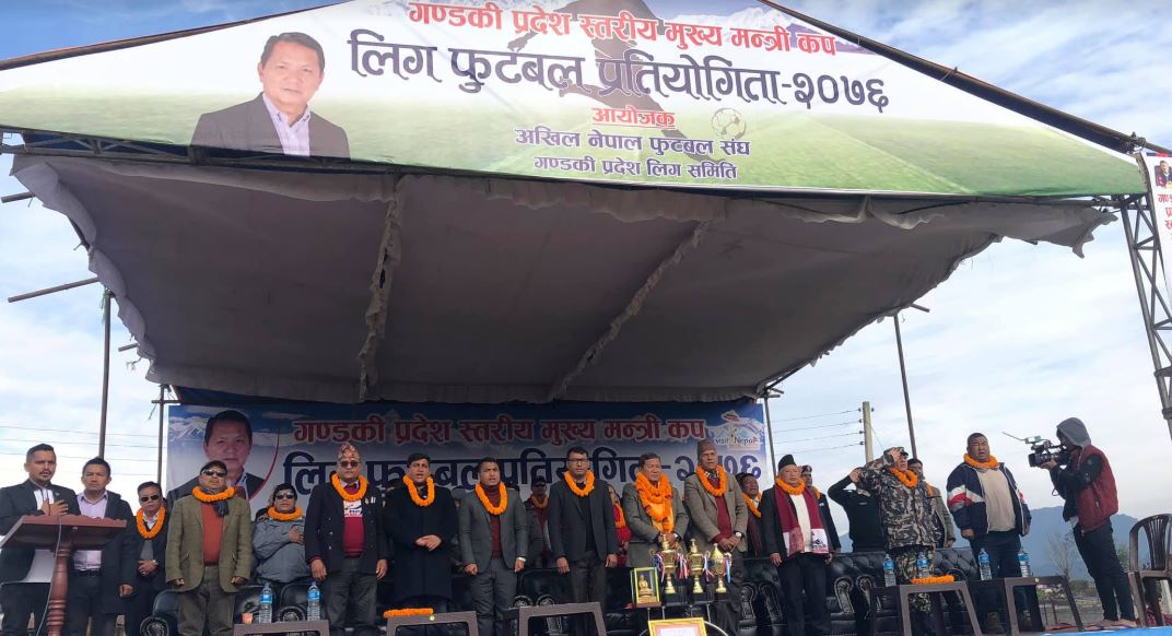 पोखराको भण्डारढिक खेलमैदानमा गण्डकी प्रदेश स्तरिय मुख्यमन्त्री कप फुटबल प्रतियोगिताको उद्घाटन हुँदै थियो । प्रतियोगितामा कोषाध्यक्षको जिम्मेवारी मिलन गुरुङलाई दिइएको छ । मुख्यमन्त्री पृथ्वीसुब्बा गुरुङले केही समयपछि उद्घाटन गर्दै थिए । विशेष अतिथिका रुपमा प्रदेशसभा सदस्य राजिव गुरुङ (दिपक मनाङे) आइसकेका थिए । मुख्यमन्त्री पुगिसकेका थिएनन् ।