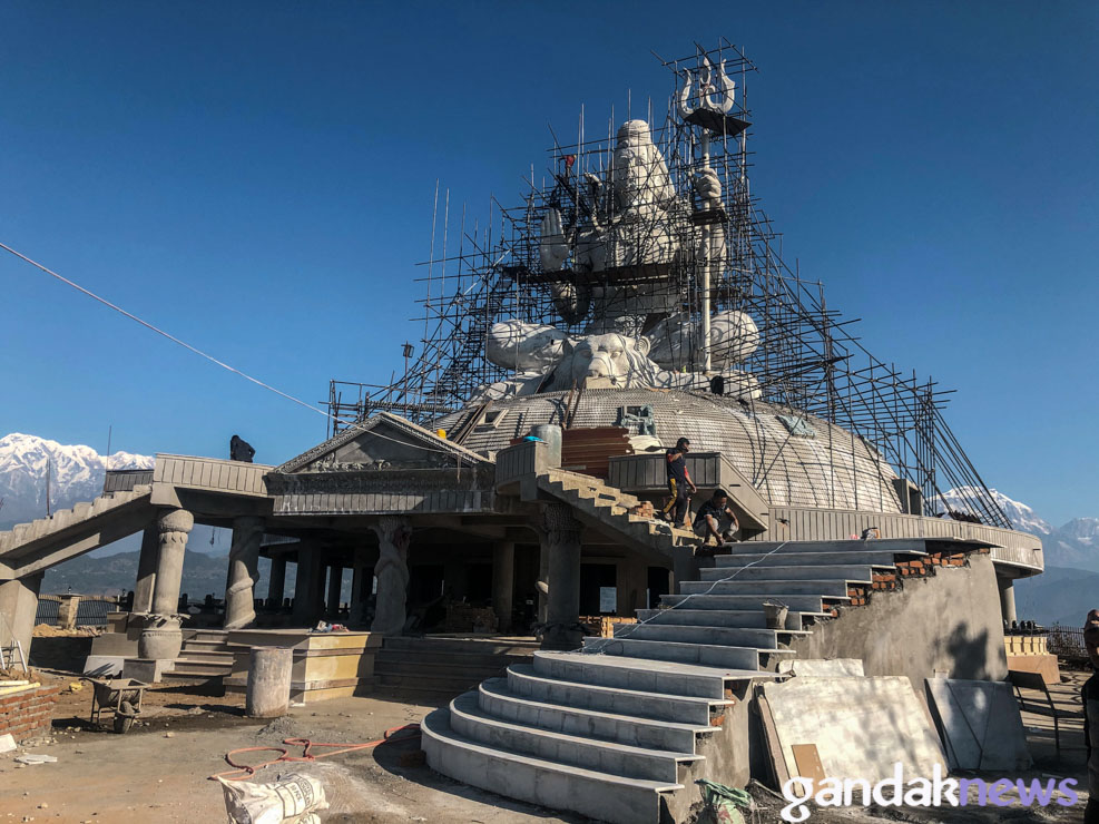 भारतको मथुरामा निर्मित सो मूर्ति जडानमा हाल २० जना कामदार खटिएका छन् । सिंहासनमा बसेको ५१ फिट अग्लो सो मूर्तिको जडान कार्य अहिले जारी रहेको छ ।