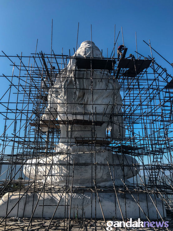 ‘नागरिक उड्डयन प्राधिकरणको सुझावलाई मध्यनजर गर्दै १०८ फिटबाट घटाई ५१ फिटमा झारिएको हो’ अध्यक्ष बरालले भने–‘उभ्भिएको मूर्ति राख्ने योजना थियो। अहिले बसेको(पद्मासनको) मूर्ति राखिने छ।’